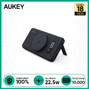 Pin Dự Phòng Không Dây AUKEY Sạc Nhanh 22.5W 10.000mAh PB-WL01I Tích Hợp Giá Đỡ Điện Thoại Và Màn Hình Hiển Thị Dung Lượng