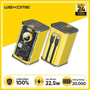 Pin Dự Phòng WEKOME WP-347 20.000mAh 22.5W Kèm Cáp Sạc Nhanh 2 trong 1 Thiết Kế Trong Suốt